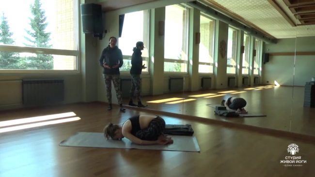 Короткая балансовая практика преимущественно на одной ноге.