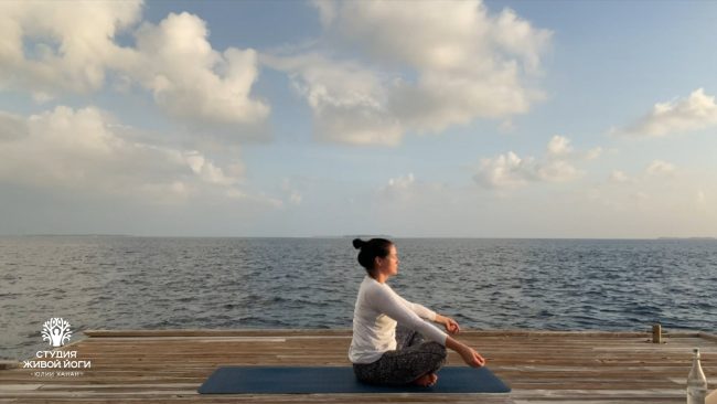 Необычная разминка начинается с необычного пресса. Много боковых движений и переходов с активацией бедер, интересные скручивания, тренировка баланса и координации. Медитация здоровья в конце.