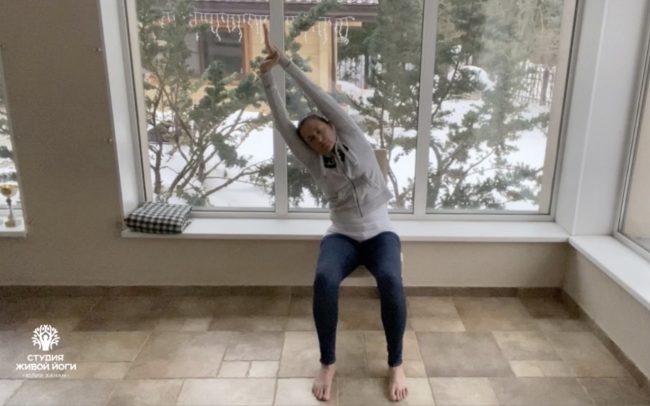 Короткая практика сидя на стуле хорошо взбодрит тело во время долгого сидения за рабочим столом.