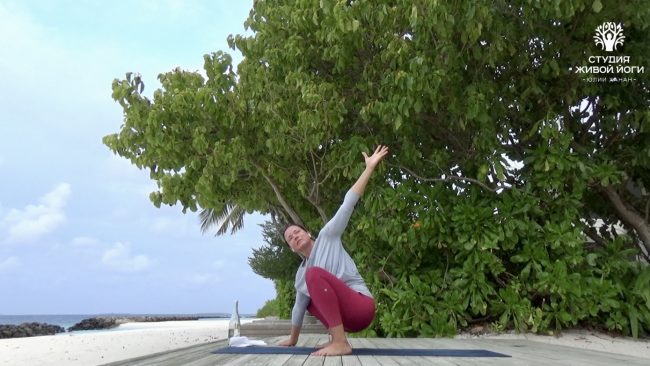Игривая, динамичная, круговая практика с хорошей разминкой, скрутками и балансами. Идеальна в качестве утренней зарядки.